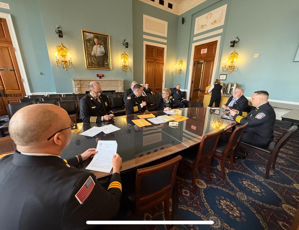 Throughout the day, the delegation met with Pennsylvania state legislators to outline several growing concerns. Among the most urgent topics was the impact of recent DHS funding decisions that threaten the continued operation of the National Fire Academy. Leaders also emphasized the importance of sustaining federal AFG and SAFER grant programs, which remain essential for staffing, training, and equipping fire departments across the Commonwealth.