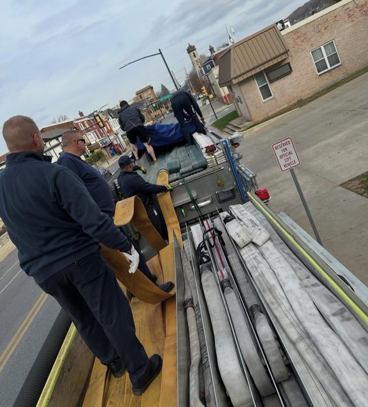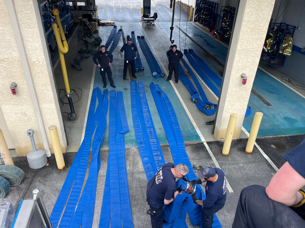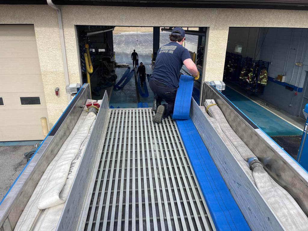 In true fire service fashion, a neighboring department stepped up without hesitation. The Coatesville Fire Department provided us with 5‑inch hose to use while we awaited delivery of new supply line from the manufacturer. Their crews not only loaned the hose but also assisted our members in packing it onto Engine 44‑5. When our new hose arrived, they returned once again to help us load the fresh supply line onto the engine.